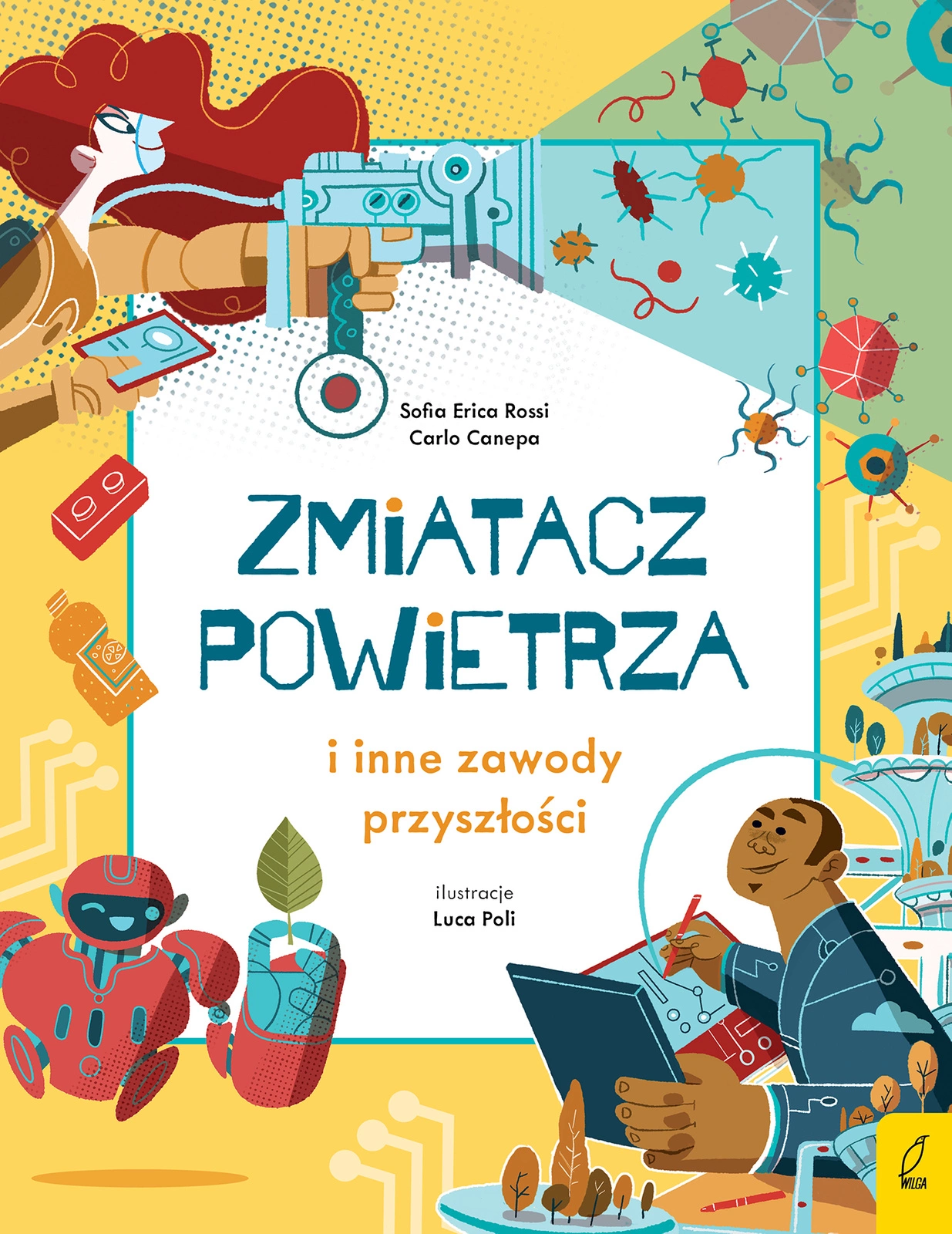 Koniec marzeń o tym, żeby zostać gwiazdą piłki nożnej czy baletnicą – dzięki tej książce dzieci dowiedzą się, jakie nowe zawody będą mogły wykonywać w przyszłości! Czy wyławiacz plastiku uratuje oceany przed plagą plastikowych śmieci? Czy zszywaczka DNA zreperuje chore genomy? Czy projektant dzikiej przyrody pomoże zachować zagrożone środowiska naturalne? Książka Zmiatacz powietrza i inne zawody przyszłości poprzez zabawne przedstawienie nieistniejących jeszcze zawodów, ukazuje najnowszy rozwój wiedzy i badań naukowych. Historia zabiera czytelnika w podróż w przyszłość, zapoznając z możliwymi odkryciami naukowymi na kilku polach: od fizyki, przez ekonomię, po biologię i ekologię.