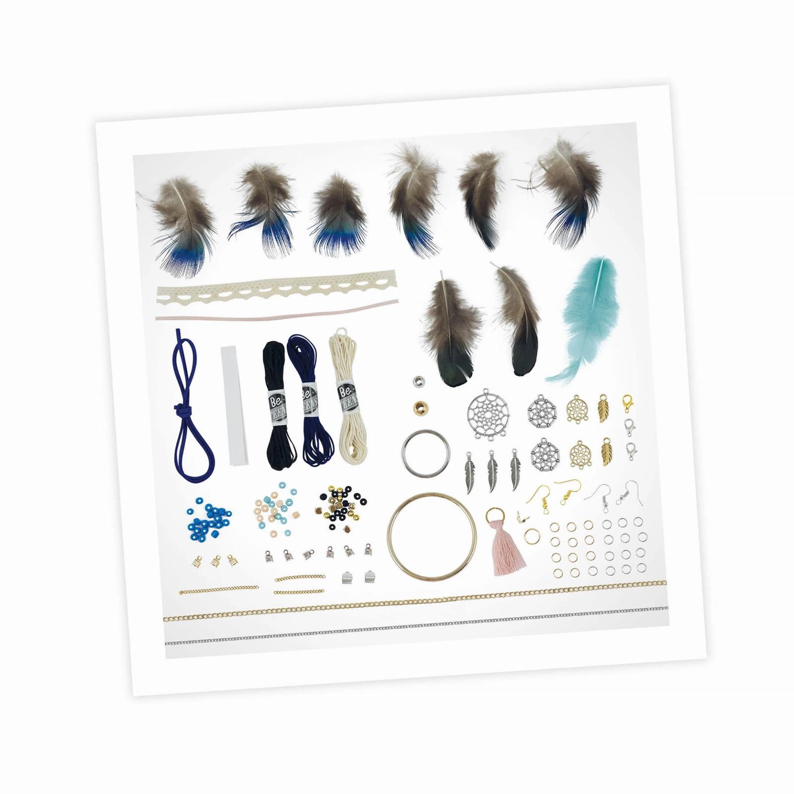 kilka piór, koralików, łańcuszków i zawieszek, aby