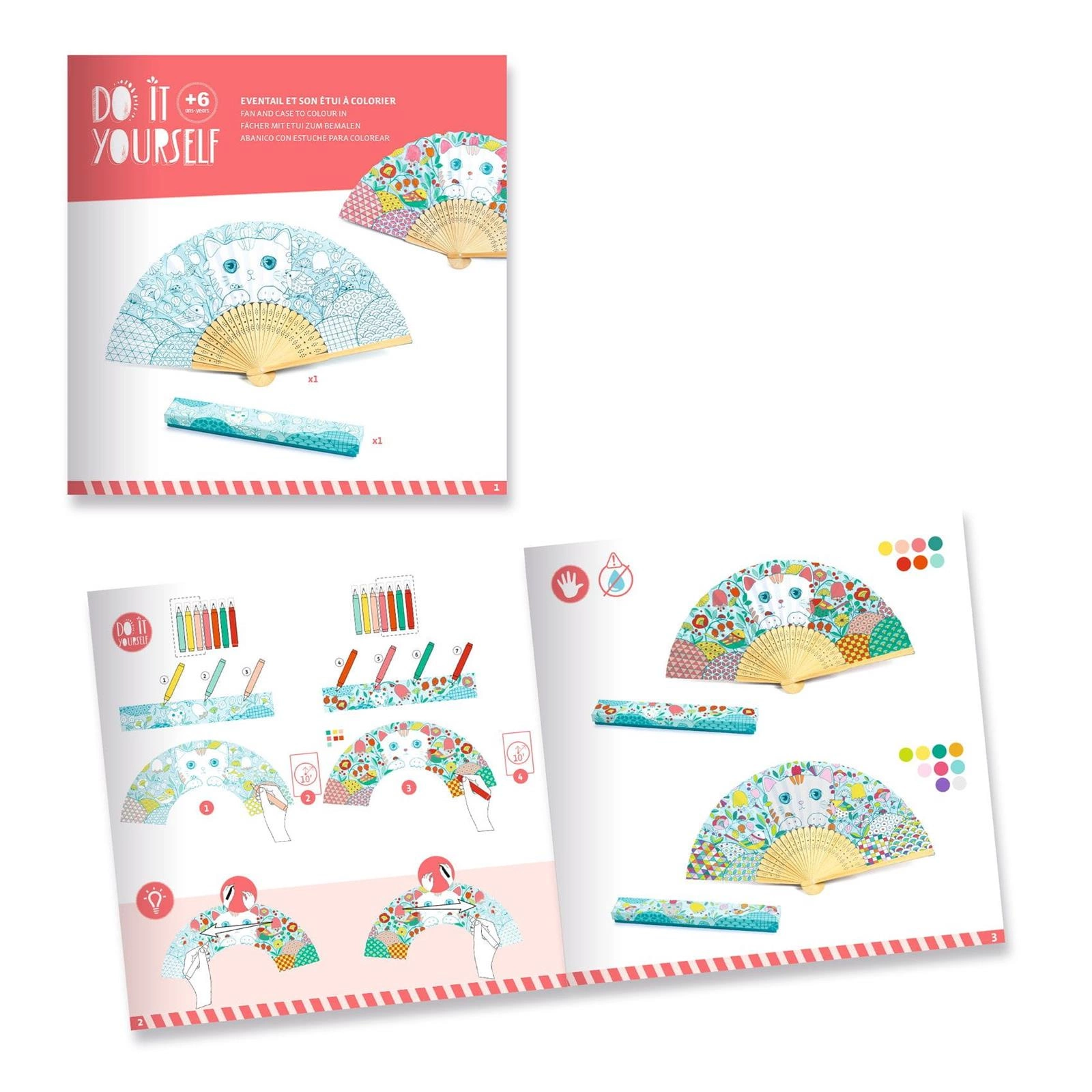 Zestaw do samodzielnego pokolorowania wachlarza oraz etui do jego przechowywania.