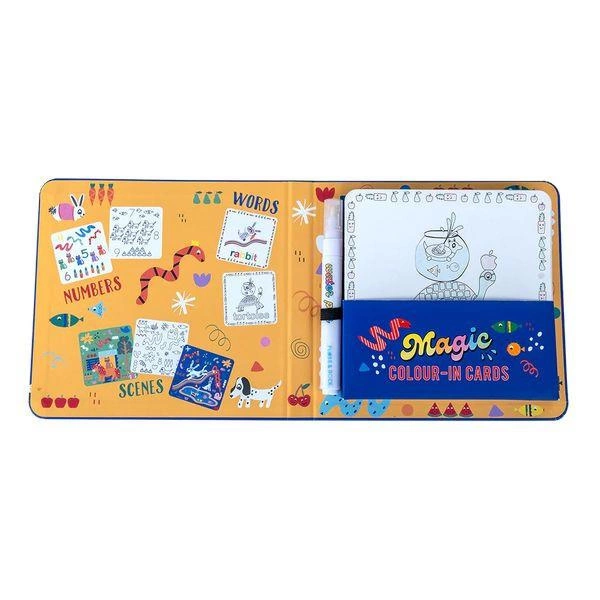Dzięki tym fantastycznym magicznym kartą wodnym zmieniającym kolor nie będziesz się już martwić o ślady w mieszkaniu. Zestaw zawiera 10 kart wielokrotnego użytku oraz długopis na wodę. Po prostu napełnij długopis wodą i zachęć dziecko do nauki przez zabawę. Każda karta zawiera słowa, cyfry i ilustrację do pokolorowania. Dziecko może tworzyć wymyślone kształty i rozwijać motorykę, wyobraźnię oraz kreatywność. Karty można używać wielokrotnie.