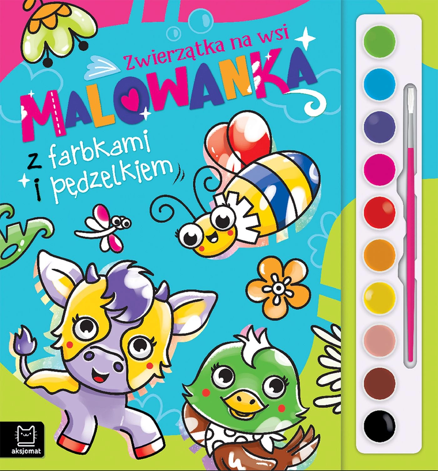 Zwierzątka na wsi. Malowanka z farbkami i pędzelkiem