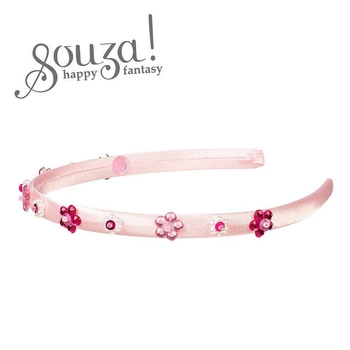 Souza! Opaska do włosów wianek ze wstążkami, kwiatami i cekinami Evaline różowo-łososiowa