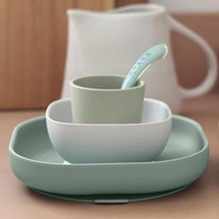 USZKODZONE OPAKOWANIE Beaba Komplet naczyń z silikonu z przyssawką Sage Green